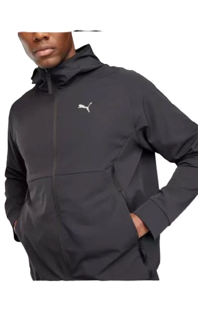 ● Tecido técnico leve e resistente ao vento ● Mangas compridas ● Corte a direito ● Fecho frontal completo e bolsos laterais com zip ● Capuz ajustável e punhos elásticos para melhor ajuste ● Design moderno com logótipo Puma refletor termofixado ● Material: 89% poliéster, 11% elastano